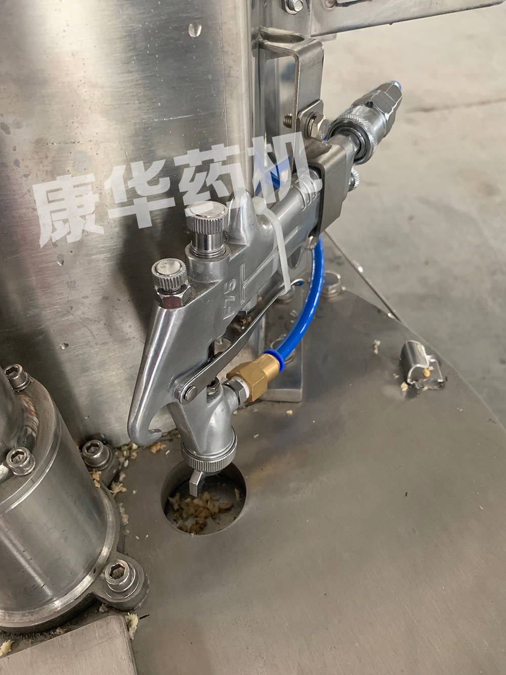 工作原理:將物料放入相應(yīng)進料斗,氣缸自動壓料,切刀固定于轉(zhuǎn)盤正面,轉(zhuǎn)盤與切刀的合適間隙通過伺服電機控制刀盤上下調(diào)節(jié),當(dāng)電機帶動刀盤,將物料切成片狀。配有水槍噴霧裝置,使刀片切制藥材不容易粘刀,片形更好。